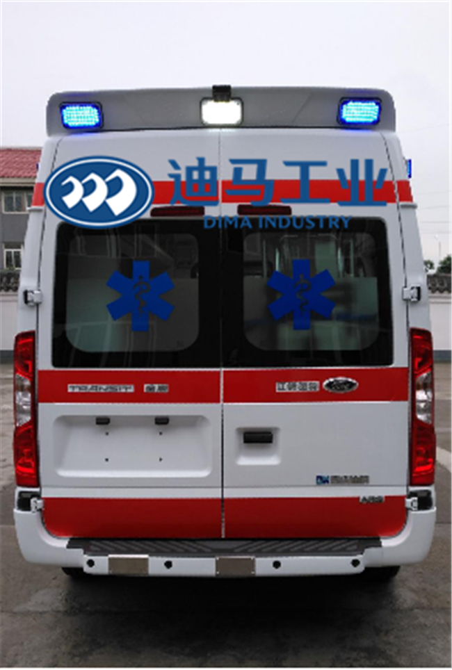 Dima DMT5040XJHV ambulance is an ambulance modified by JJMC Transit V348 short axle chassis JX6500TA-L5, mainly used for transportation and temporary ambulance of critically ill patients and infectious patients.